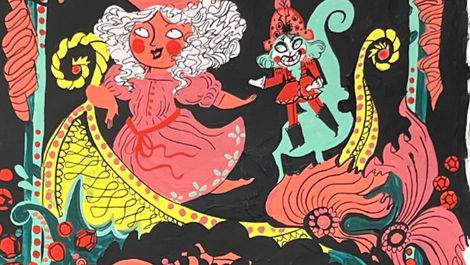 " The brief was to simply bring Alexandre Dumas’ version of ‘The Nutcracker’ to life with only six interior spreads, endpapers, cover and slip case for the Folio Society. It was equally daunting and exciting to be invited to be a part of a story with such a lineage of art attached to it. My intention heading into the project was to combine elements of traditional set design as an homage to the ballet and orchestral scores with illustration. I achieved this by creating ornate frames and borders twisting around with each spread in a similar treatment many set designers have used to frame the stages they create their art for. I also knew, quite early on, that the colors had to feel candy-esque. It is easy to lean into the reds and greens of Christmas, but this story demanded a much broader and more playful palette."